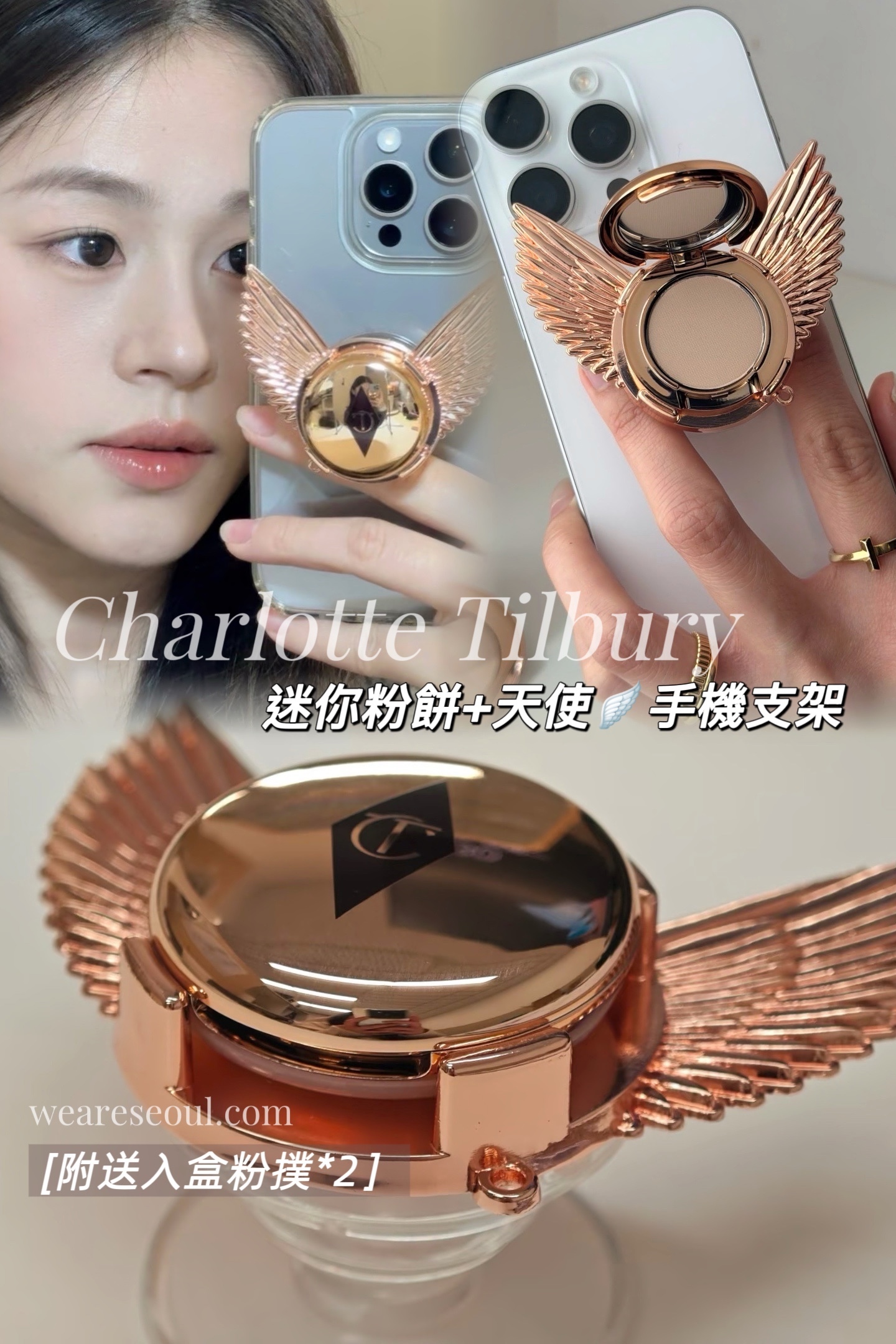 Charlotte Tilbury 最新專櫃限定🎀天使翼手機支架+迷你定妝粉餅0.8g (可替換)