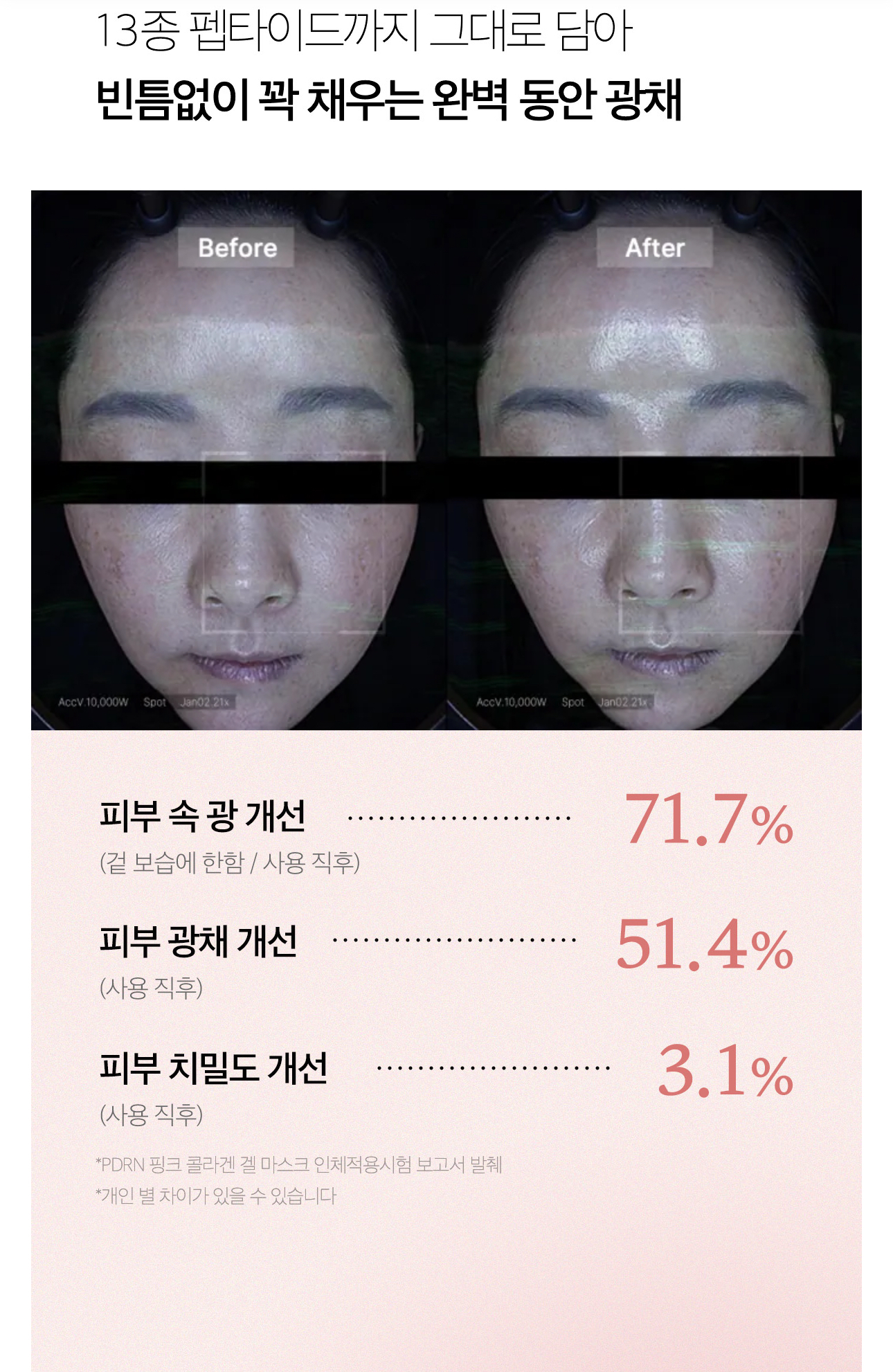 根據研究報告顯示,PDRN粉紅膠原蛋白凝膠面膜能有效提升肌膚彈性和改善細紋: