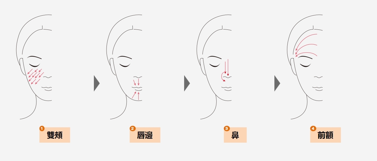 寬闊的一端適用於臉頰及下巴等較大範圍