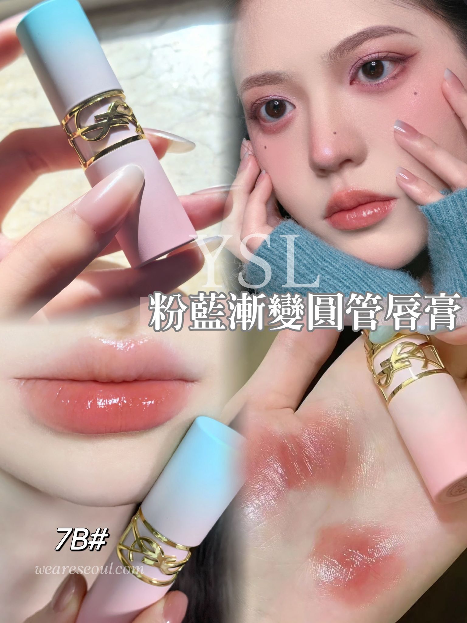 YSL 粉藍漸變限定🦋粉圓管水光唇膏 #7B (無盒優惠)